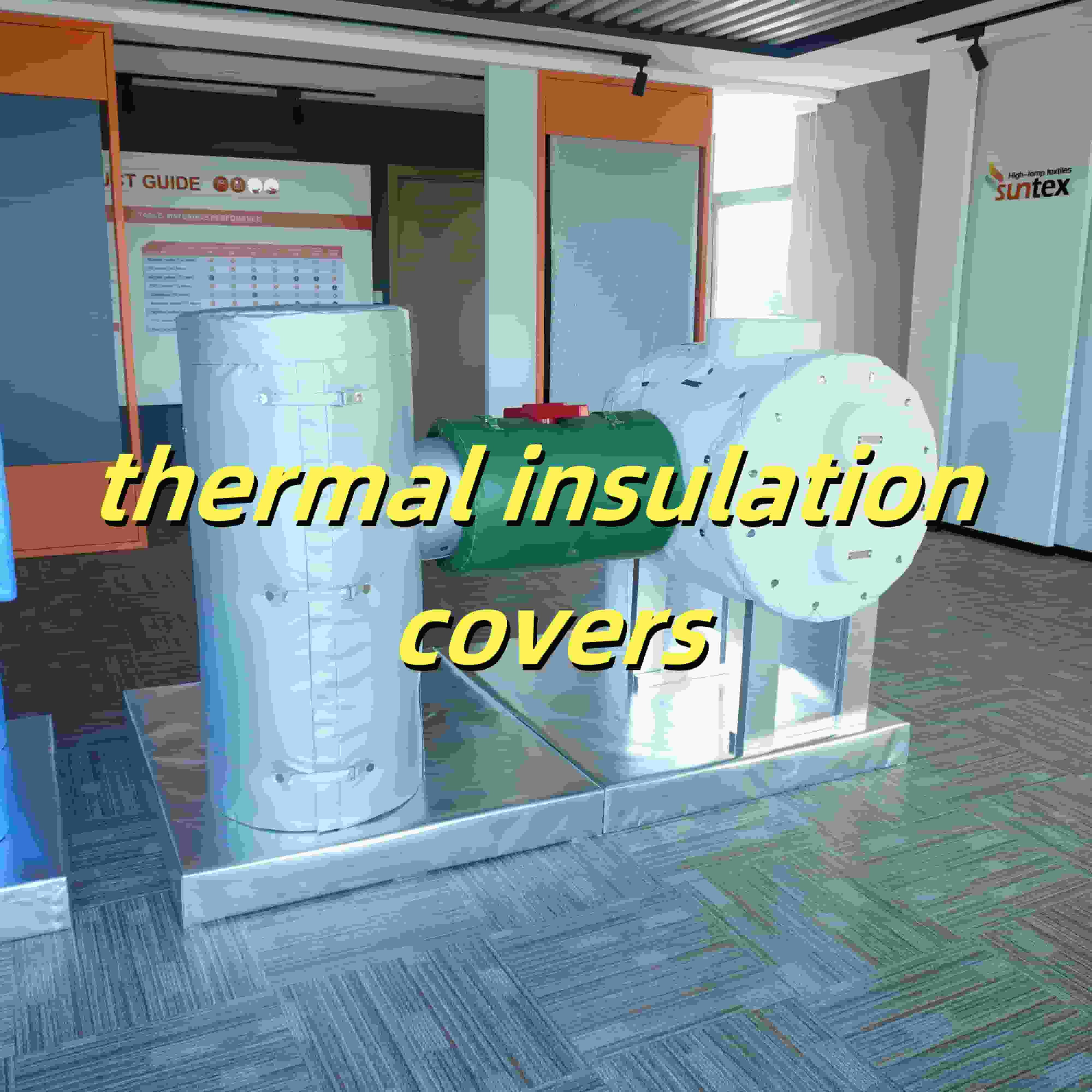 As jaquetas de isolamento removíveis do Suntex são construídas com fibra de vidro e papel alumínio resistente a alta temperatura ou pano de silicone. O design de três camadas inclui camadas internas, de isolamento e protetor, capaz de suportar temperaturas de até 1000 ° C.