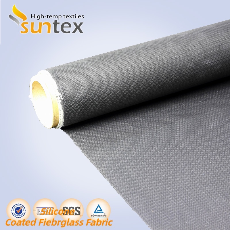 Tecido de fibra de vidro revestido com silicone à prova de fogo e resistente ao calor de 850g/m2, tecido de fibra de vidro de alta sílica